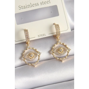 Pirinç Gold Renk Zirkon Taşlı Göz Model Kadın Küpe