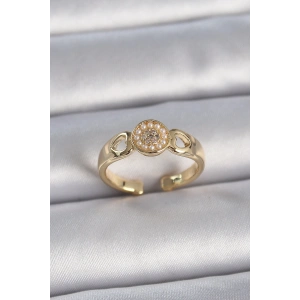 Pirinç Gold Renk Zirkon Taşlı Kalp İnci Detaylı Ayarlanabilir Model Kadın Yüzük