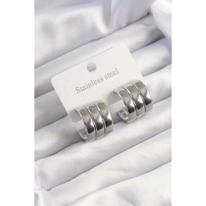316L Çelik Gümüş Renk 3lü Görünüm Bombe Model Yarım Halka Küpe