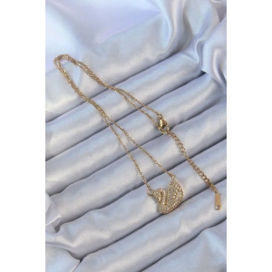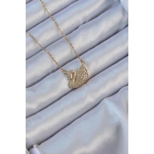 316L Çelik Zincir Altın Renk Zirkon Taşlı Kuğu Kolye