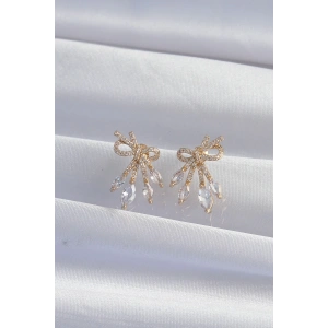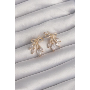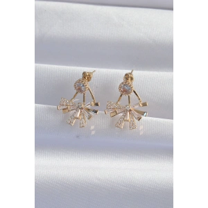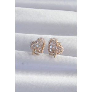 Pirinç Gold Renk Zirkon Taşlı Kalp Model Fiyonk Küpe
