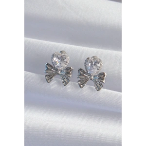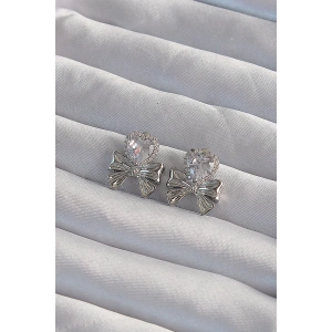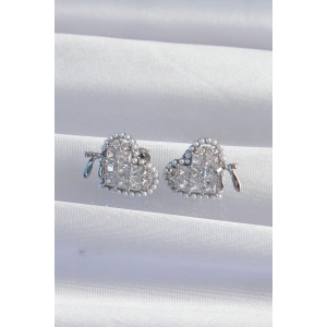 Pirinç Gümüş Renk Zirkon Taşlı Kalp Model Fiyonk Küpe