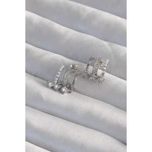 Pirinç Gümüş Renk İncili Çoklu Zirkon Taşlı Yarım Halka Küpe