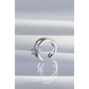 Pirinç Gümüş Renk Zirkon Taş Kaplama Earcuff Küpe
