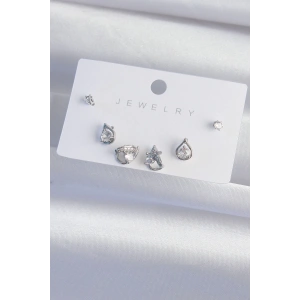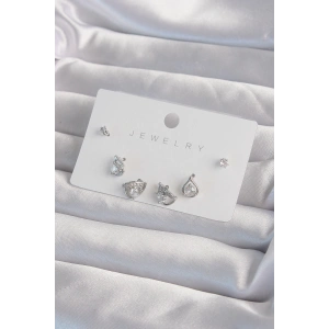 Pirinç Gümüş Renk Zirkon Taşlı Damla Model Küpe Seti