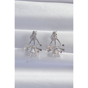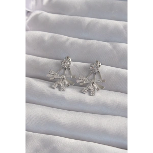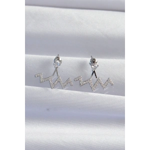 Pirinç Gümüş Renk Zirkon Taşlı Zikzak Küpe