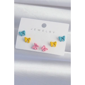 Pirinç Rengarenk Mineli Minimal Kelebek Küpe Seti