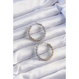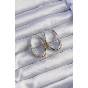 Pirinç Gold Gümüş Renkli Oval Çoklu Görünümlü Küpe