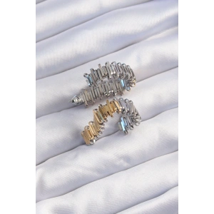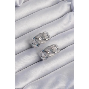 Pirinç Gümüş Renk Zirkon Taşlı Geometrik Model Küpe