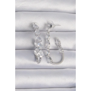 Pirinç Gümüş Renk Damla Zirkon Taş Tasarımlı Küpe