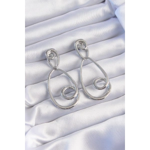 Pirinç Gümüş Renk Kıvrımlı Sallantılı Küpe