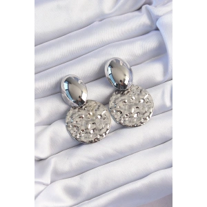 Pirinç Gümüş Renk Geometrik Ezme Plaka Küpe
