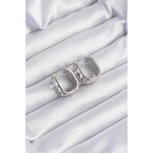 Pirinç Gümüş Renk Oval İşlemeli Küpe
