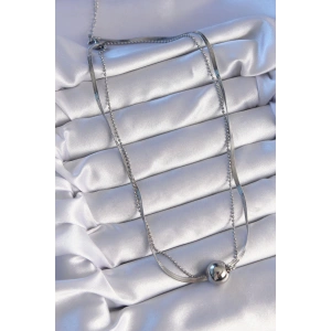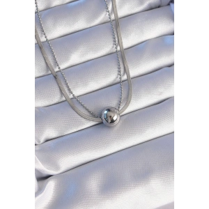 316L Çelik Çift Zincirli Gümüş Renk Topçuk Model Kolye