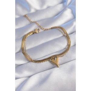 316L Çelik Gold Renk İtalyan Zincirli Kalp Model Bileklik