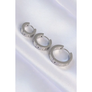 316L Çelik Gümüş Renk Model 3lü Halka Küpe