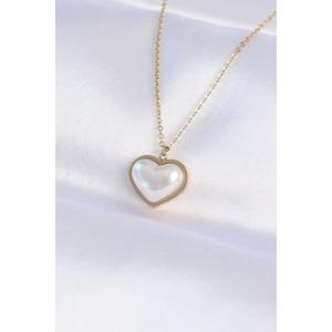 316L Çelik Zincir Gold Renk Beyaz Taşlı Bubble Kalp Kolye