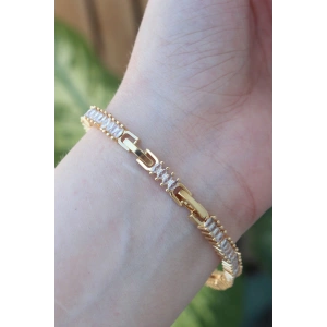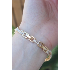Vip Seri Pirinç Pembe Zirkon Taşlı Gold Renk Baget Model Bileklik