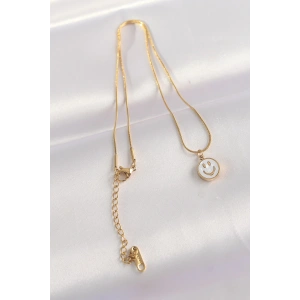 316L Çelik Zincir Altın Renk Mermer Desenli Minimal Smile Kolye