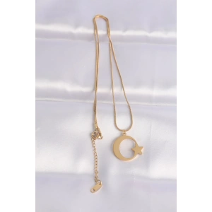 316L Çelik Zincir Gold Renk Ay Yıldız Unisex Kolye