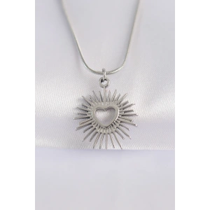 316L Çelik Zincir Gümüş Renk Kalp Güneşi Tasarımlı Kolye