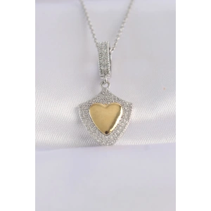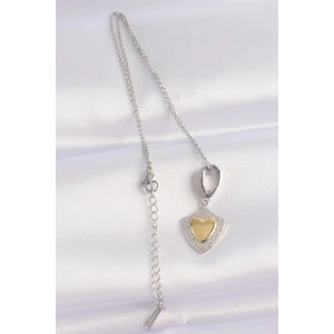 316L Çelik Zincir Gümüş Renk Zirkon Taşlı Tasarım Altın Renk Kalp Kolye