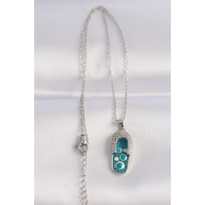 316L Çelik Zincir Zirkon Taşlı Gümüş Renk Nazarlı Terlik Tasarımlı Kolye