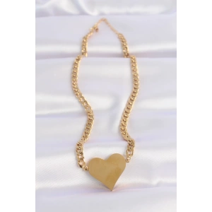 316L Çelik Zincir Altın Renk Düz Plaka Kalp Kolye