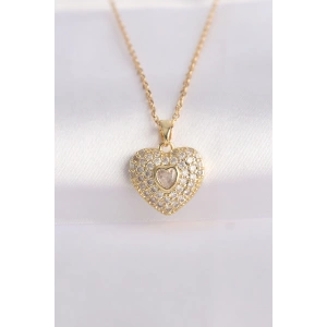 316L Çelik Zincir Altın Renk Zirkon Taşlı Kalp Kolye