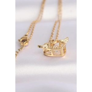 316L Çelik Zincir Altın Renk Zirkon Taşlı Kanatlı Kalp Kolye