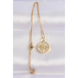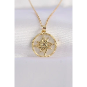 316L Çelik Zincir Altın Renk Zirkon Taşlı Oval Tasarım Güneş Kolye