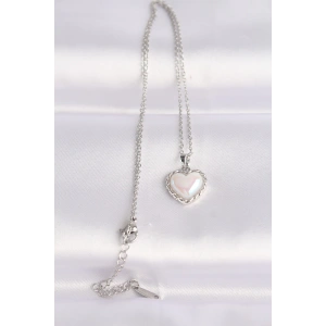 316L Çelik Zincir Gümüş Renk Beyaz Taşlı Bombeli Kalp Kolye