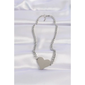 316L Çelik Zincir Gümüş Renk Düz Plaka Kalp Kolye