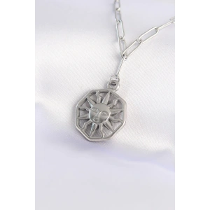 316L Çelik Zincir Gümüş Renk Güneş Kolye