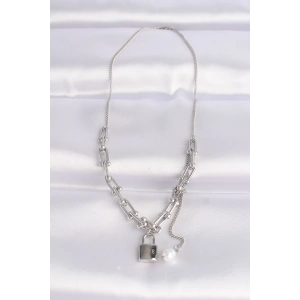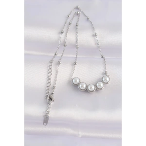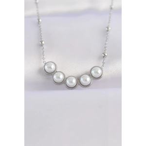 316L Çelik Zincir Gümüş Renk Sıralı İnci Taşlı Kolye