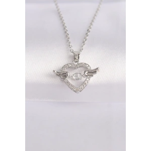 316L Çelik Zincir Gümüş Renk Zirkon Taşlı Kanatlı Kalp Kolye