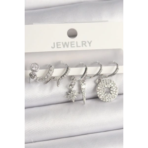 Pirinç Gümüş Renk Zirkon Taşlı Çoklu Figür Kadın Küpe Seti