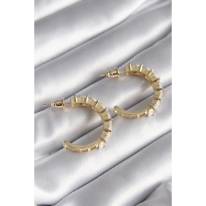 Pirinç Gold Renk Zirkon Taşlı Halka Model Kadın Küpe