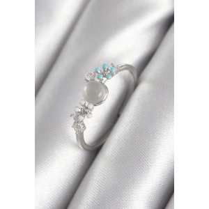 Pirinç Gümüş Renk Zirkon Taş Detaylı Beyaz Sedefli Çiçek Model Kadın Yüzük