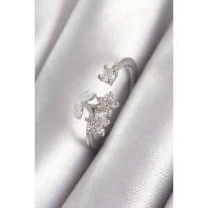 Pirinç Gümüş Renk Zirkon Taşlı Çiçek Model Kadın Yüzük