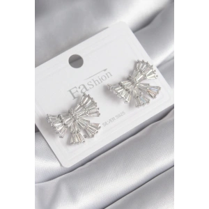 Pirinç Gümüş Renk Zirkon Taşlı Kurdele Model Kadın Küp