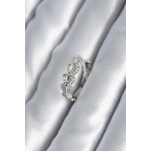Pirinç Gümüş Renk Zirkon Taş Detay Kurdele Model Kadın Yüzük