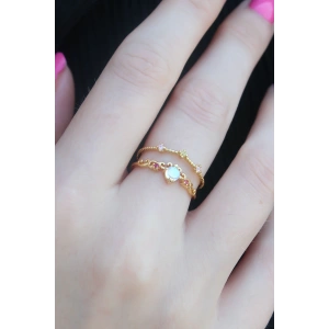Gold Renk Renkli Zirkon Taşlı Pirinç Kadın Yüzük