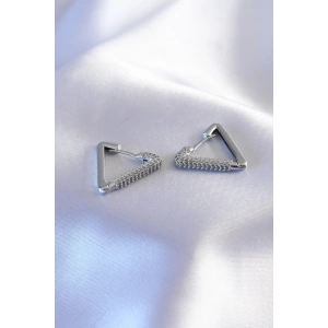 Gümüş Renk Zirkon Taşlı Üçgen Model Kadın Küpe