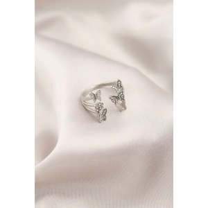 Gümüş Renk Metal Kelebek Model Kadın Yüzük
