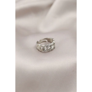 Gümüş Renk Metal Zincir Model Taşlı Kadın Yüzük