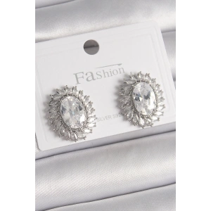 Pirinç Gümüş Renk Zirkon Taşlı Kadın Küpe