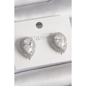 Pirinç Gümüş Renk Zirkon Taşlı Damla Model Kadın Küpe