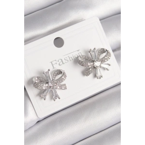 Pirinç Gümüş Renk Zirkon Taşlı Kurdele Model Kadın Küpe