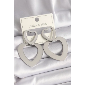 316L Çelik Gümüş Renk Kalp Model Kadın Küpe